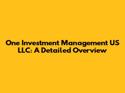 One Investment Management US LLC: A Detailed Overview