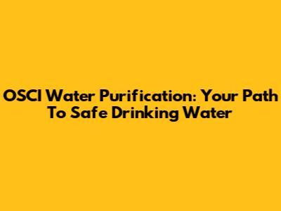OSCI Water Purification: Your Path To Safe Drinking Water