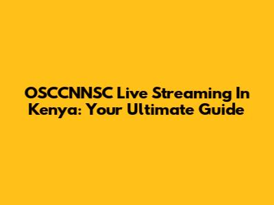 OSCCNNSC Live Streaming In Kenya: Your Ultimate Guide