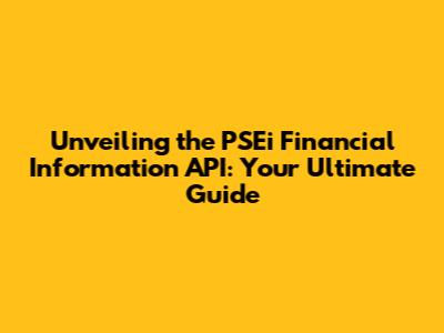 Hey there, finance enthusiasts and data nerds! Are you ready to dive deep into the world of Philippine Stock Exchange (PSE) data? Well, you're in the right place! We're going to explore the PSEi Financial Information API, a powerful tool that gives you access to a wealth of financial data. This guide is your ultimate companion, whether you're a seasoned investor, a budding analyst, or just curious about how the stock market works. We'll break down everything you need to know, from what the API is all about to how you can start using it.