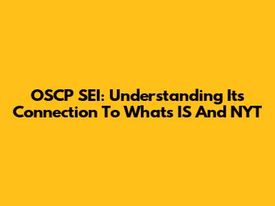 OSCP SEI: Understanding Its Connection To What's IS And NYT