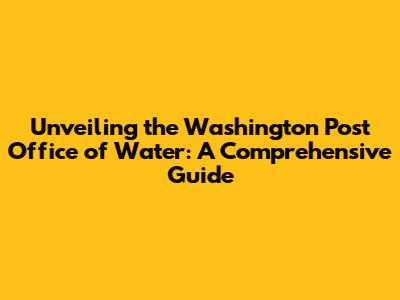 Hey everyone! Ever heard of the Washington Post Office of Water? Maybe not, but trust me, it's a fascinating topic, and we're about to dive deep into it! This guide is your one-stop shop for understanding everything about this unique entity. We will explore its origins, its role, and its impact. This is not just a historical overview; it's a look at how this organization has shaped the water landscape. We'll examine its contributions to water management, environmental protection, and public awareness. So, buckle up, because we're about to embark on an enlightening journey through the world of the Washington Post Office of Water. Ready to get started?