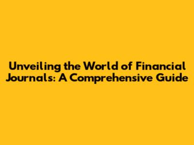Hey there, finance enthusiasts! Ever wondered about the inner workings of the financial world? Well, you're in for a treat! We're about to dive deep into the fascinating realm of financial journals. Think of these journals as the secret diaries of the money world, filled with insights, analyses, and groundbreaking research that shape the way we understand and interact with finance. This guide will walk you through the key aspects, types, and importance of these essential publications. Get ready to level up your financial knowledge, guys!