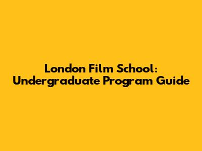 London Film School: Undergraduate Program Guide