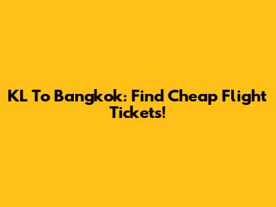 KL To Bangkok: Find Cheap Flight Tickets!