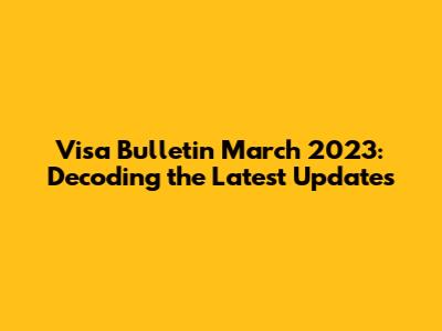 Keep in mind that these are just general trends. The actual Visa Bulletin for March 2023 will provide the most up-to-date information. It is super important to stay informed and check the bulletin regularly. Consulting with an immigration attorney can help you understand the trends and how they may affect your individual case. Remember that immigration is a dynamic process, and staying informed is the best way to navigate it successfully.