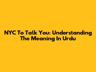NYC To Talk You: Understanding The Meaning In Urdu