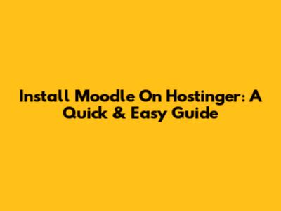Install Moodle On Hostinger: A Quick & Easy Guide