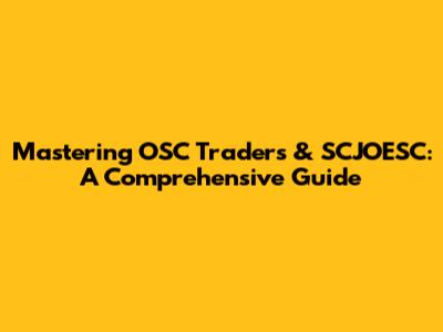 Mastering OSC Traders & SCJOESC: A Comprehensive Guide