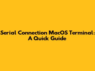 Serial Connection MacOS Terminal: A Quick Guide