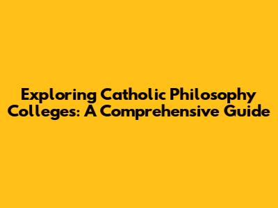 Exploring Catholic Philosophy Colleges: A Comprehensive Guide