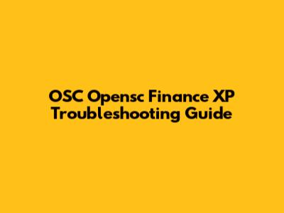 OSC Opensc Finance XP Troubleshooting Guide