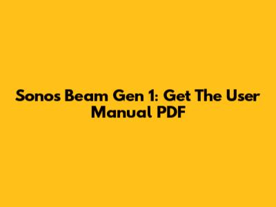 Sonos Beam Gen 1: Get The User Manual PDF