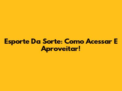 Esporte Da Sorte: Como Acessar E Aproveitar!