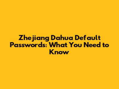 Common Default Passwords for Zhejiang Dahua